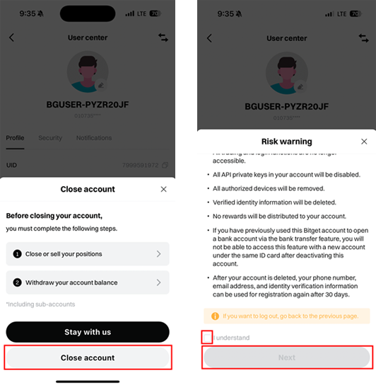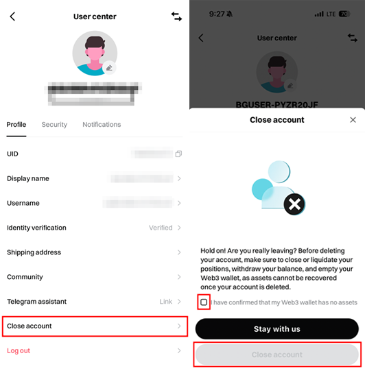④ 계정 삭제에 동의 후 "Close account" 재클릭