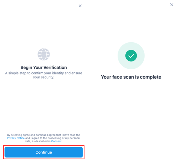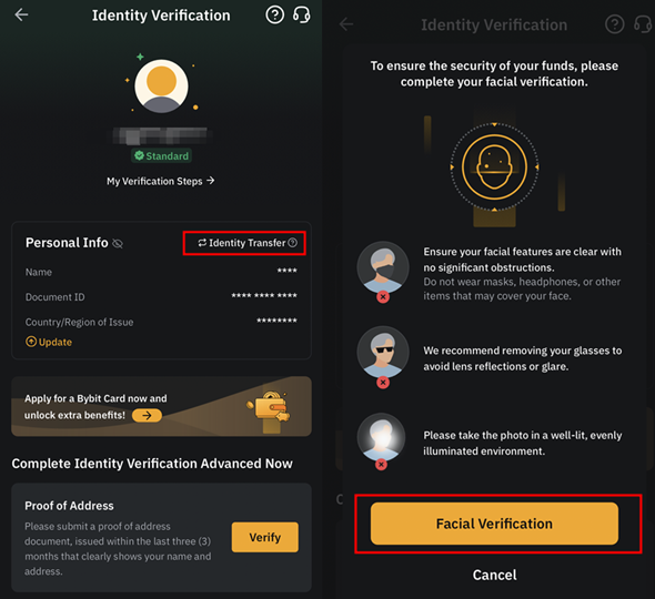④ "Facial Verification" 클릭 후 얼굴 인증 진행