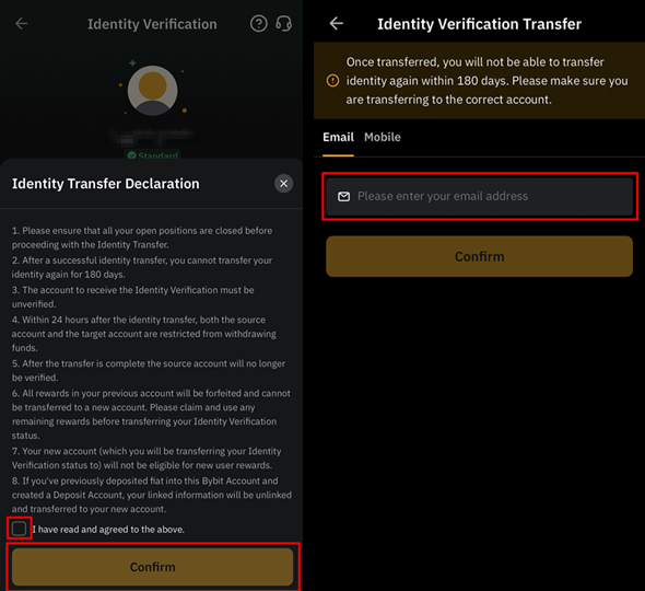 ⑤ KYC 인증은 180일에 1번만 가능하다는 내용에 동의